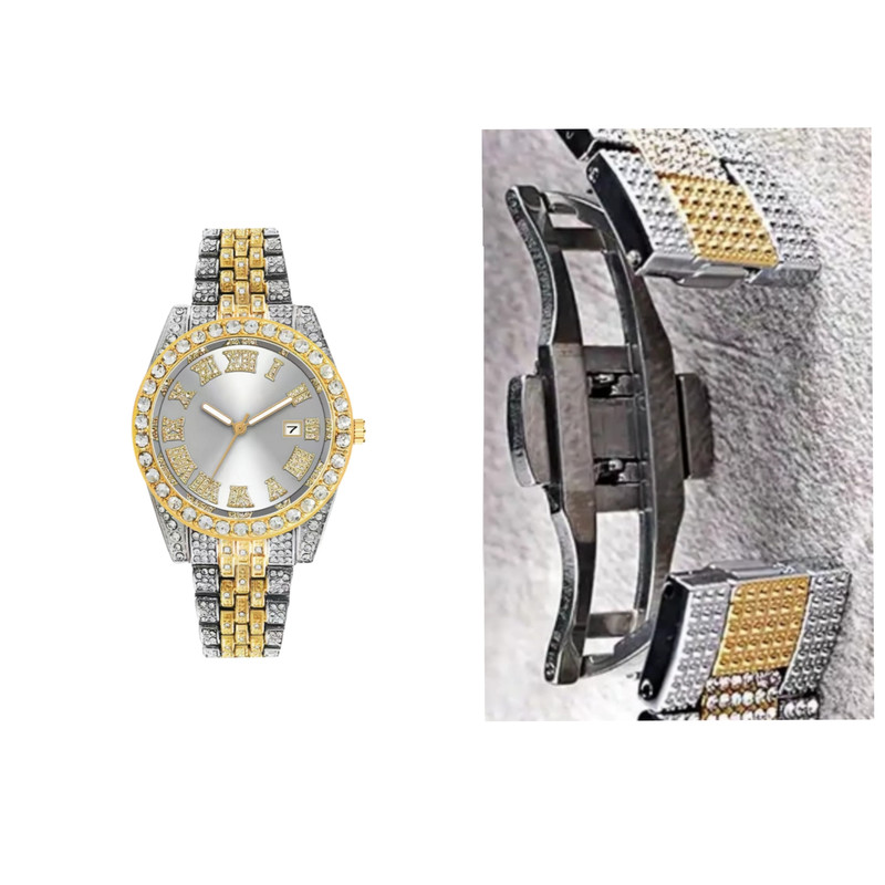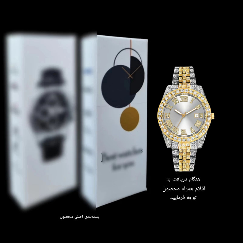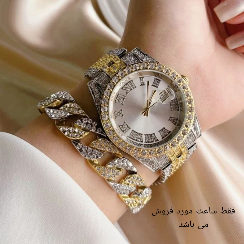 ساعت مچی عقربهای مردانه مدل دور نگین بند فول نگین کد 4