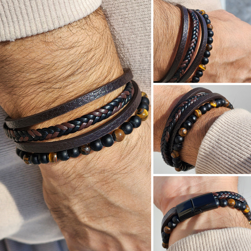 این مجموعه شامل ساعت مدل 9069 اسکمی با بند استیل، نمایش تاریخ و مقاومت آب تا 30 متر، و دستبند چرمی قهوهای مشکی ورگانتی با طراحی چندلایه و مهرههای جذاب است که استایل و راحتی را به شما هدیه میدهد.