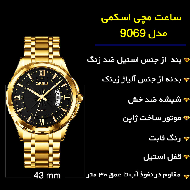 ساعت مچی عقربهای کوارتز مردانه اسکمی مدل 9069GDBK به همراه دستبند