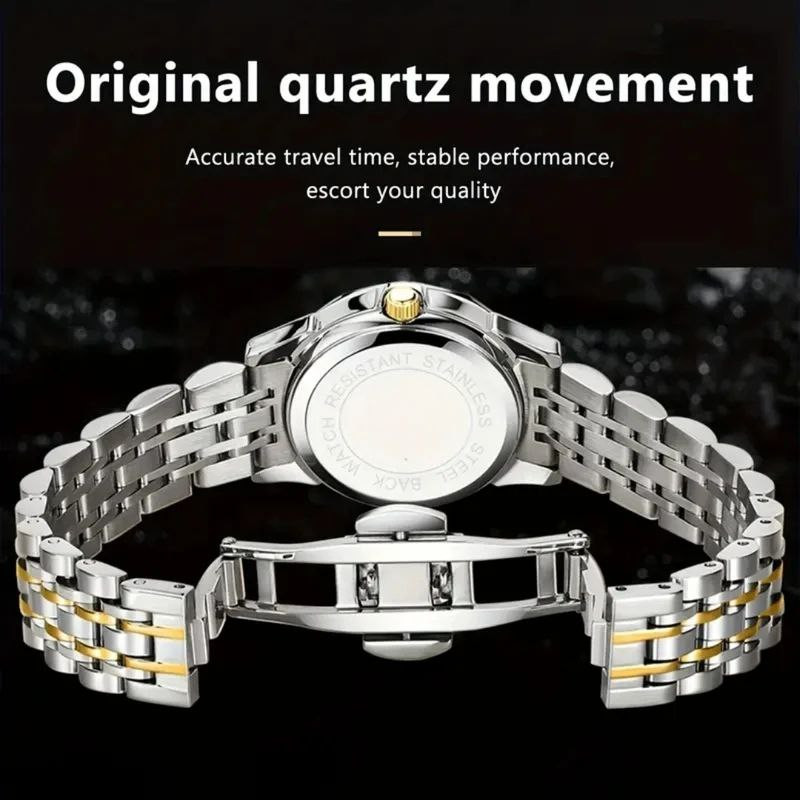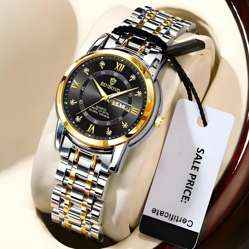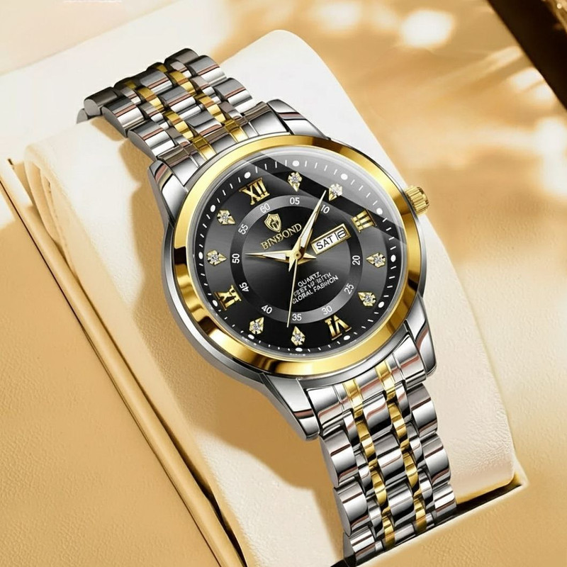 ساعت مچی عقربهای کوارتز مردانه بین باند مدل ریز بافت نگینی کد 007