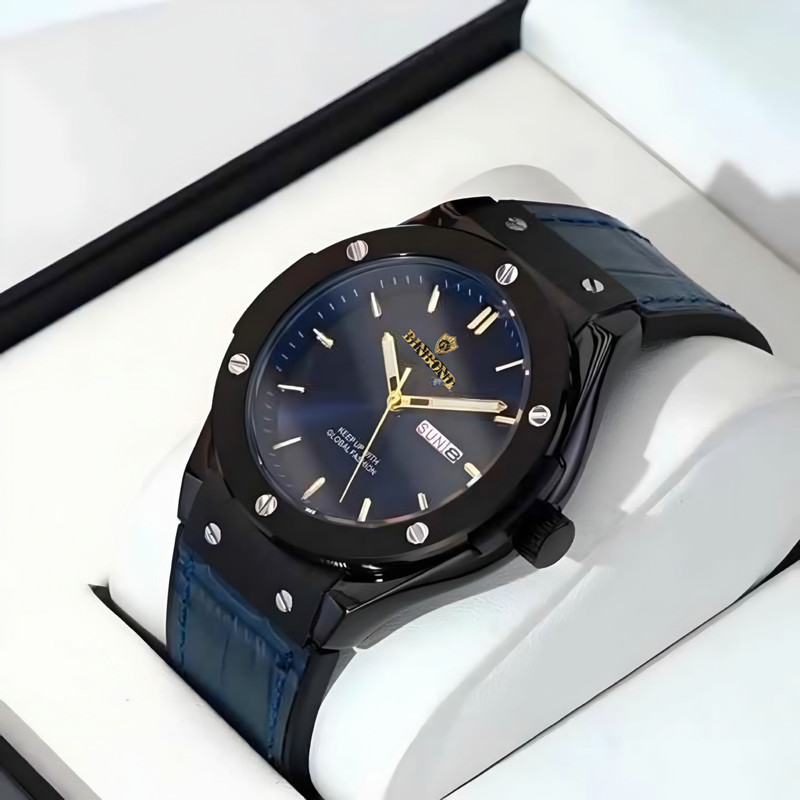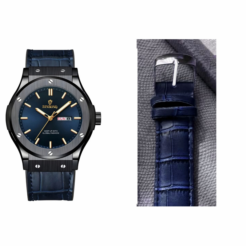 ساعت مچی عقربهای کوارتز مردانه بین باند مدل کلاسیک دی دیت بند چرم کد ۴