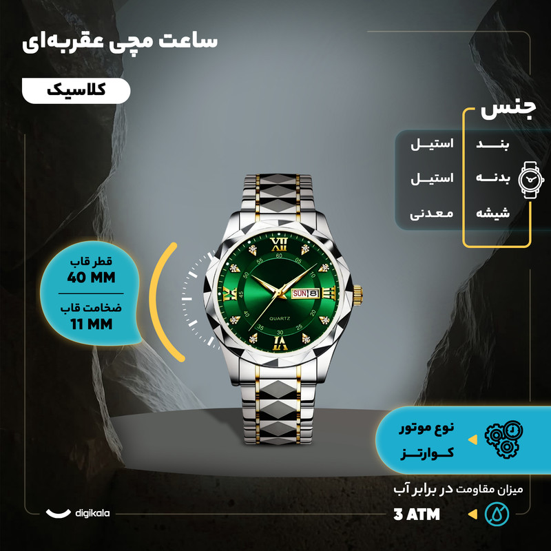 ساعت مچی عقربهای کوارتز مردانه مدل دی دیت بند استیل تراش الماسی کد C1.4