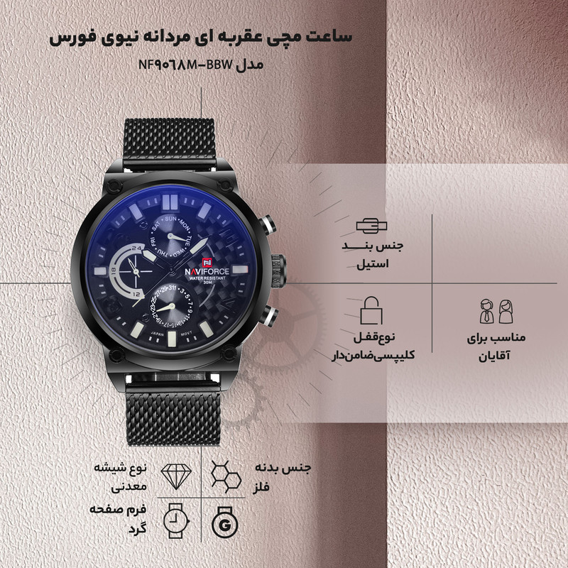 ساعت مچی عقربهای کوارتز مردانه نیوی فورس مدل NF9068M-BBW