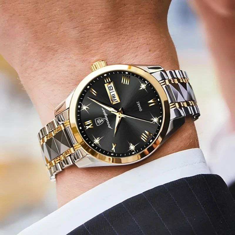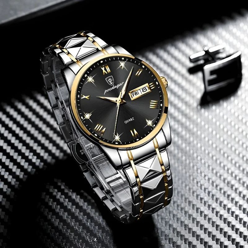 ساعت مچی عقربهای کوارتز مردانه پوداگار مدل الماسی تک موتور دو تقویمه کد 17