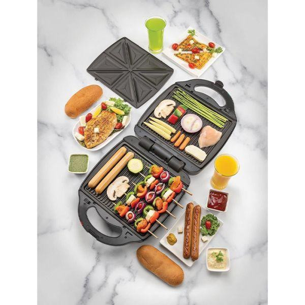 توان مصرفی ۱۴۰۰ وات، دارای صفحات ساندویچ ساز ,گریل، پوشش صفحات از جنس تفلون نچسب و با کیفیت بالا، قابلیت استفاده بصورت حالت باز ۱۸۰ درجه، صفحات جداشو و قابل شستشو، قابلیت آماده سازی هر بار ۴ عدد نان تست یا ۸ تکه مثلثی، قابلیت گریل کردن مرغ، ماهی، گوشت و سبزیجات