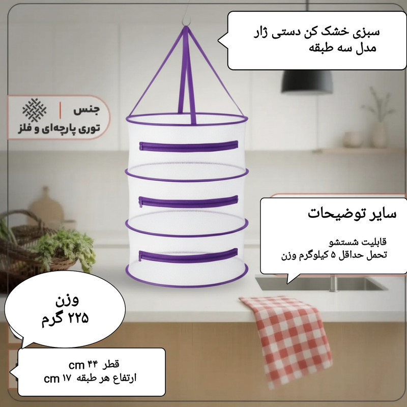سبزی خشک کن دستی ژار مدل ۳ طبقه