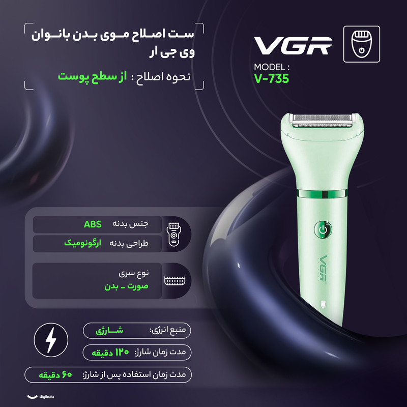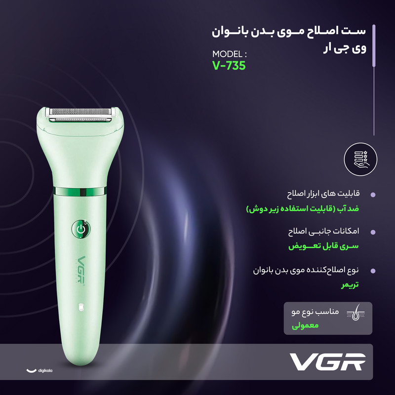 ست اصلاح موی بدن بانوان وی جی ار مدل V-735