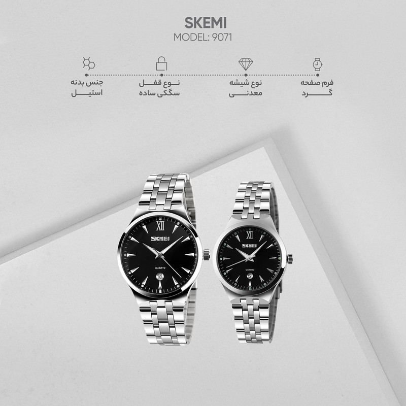 ست ساعت مچی عقربه ای زنانه و مردانه اسکمی مدل 9071
