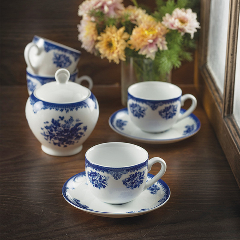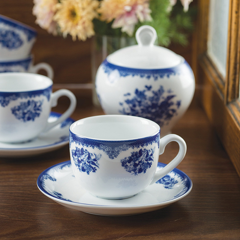 ست فنجان نعلبکی 12 پارچه چینی زرین ایران مدل چای خوری ایتالیا اف 8 فلورانس سرمه ای درجه 3