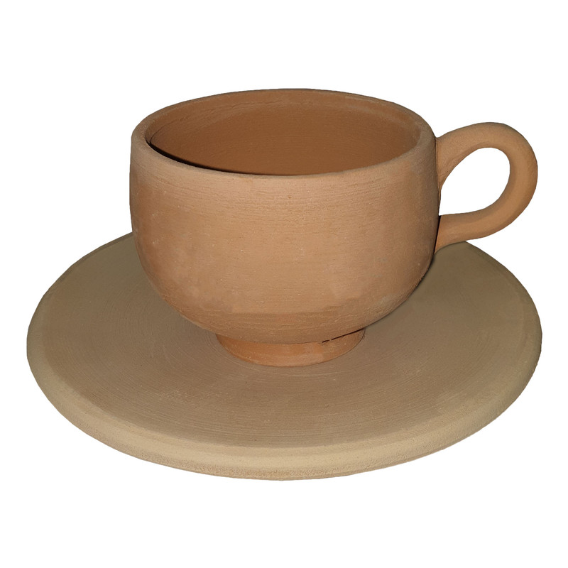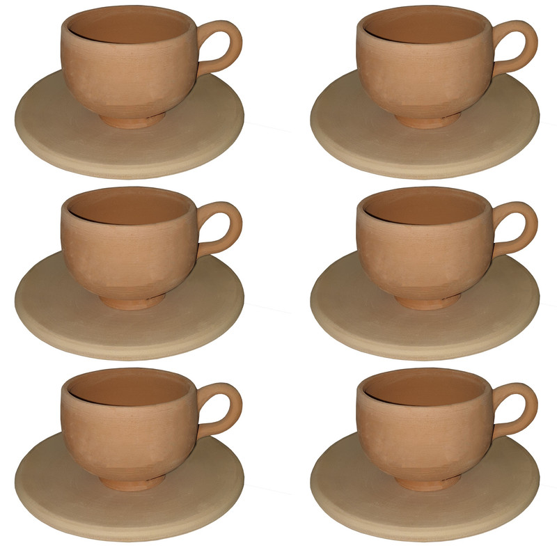 ست فنجان و نعلبکی سفالی خام مدل شیرخوری مجموعه 6 عددی