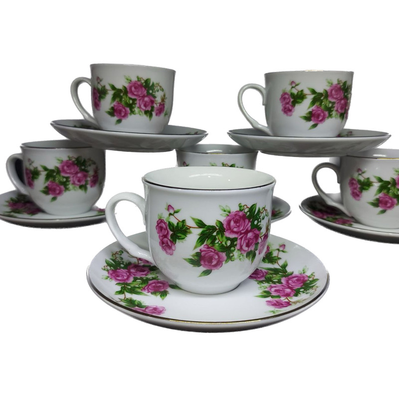 ست فنجان و نعلبکی 12 پارچه مدل گل سرخی