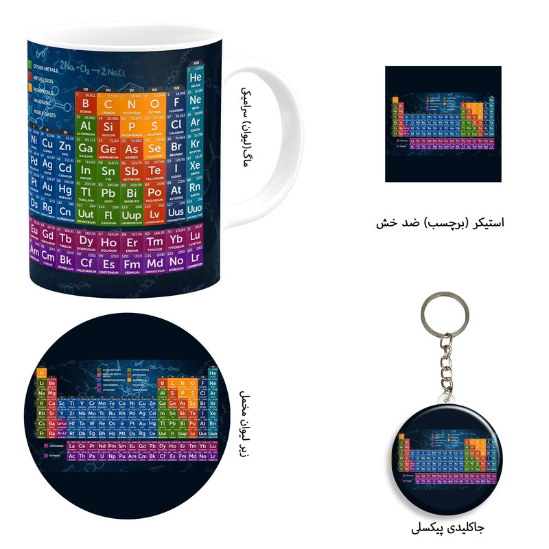 ست هدیه ماگ طرح جدول تناوبی مدل مندلیف کد 1
