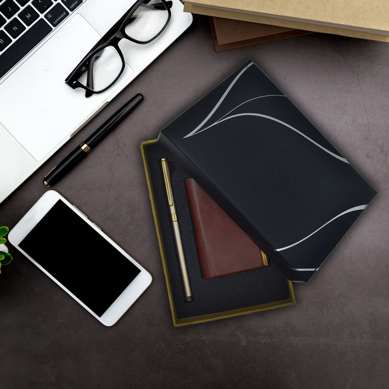 اقلام همراه این ست هدیه شامل :جا کارتی و خودکار تاچ دار و جعبه هدیه میباشد