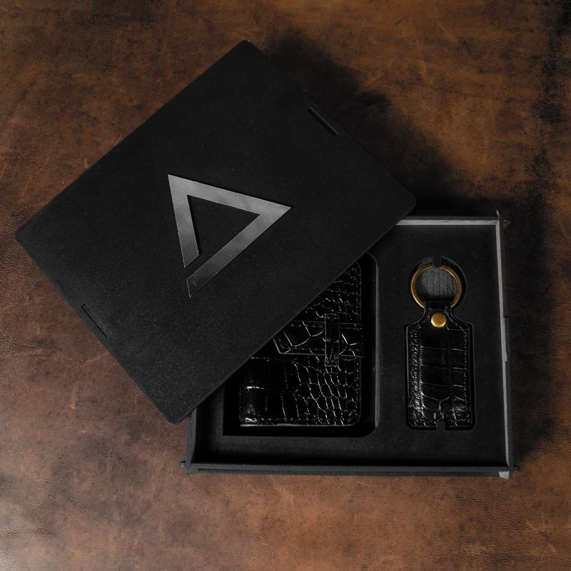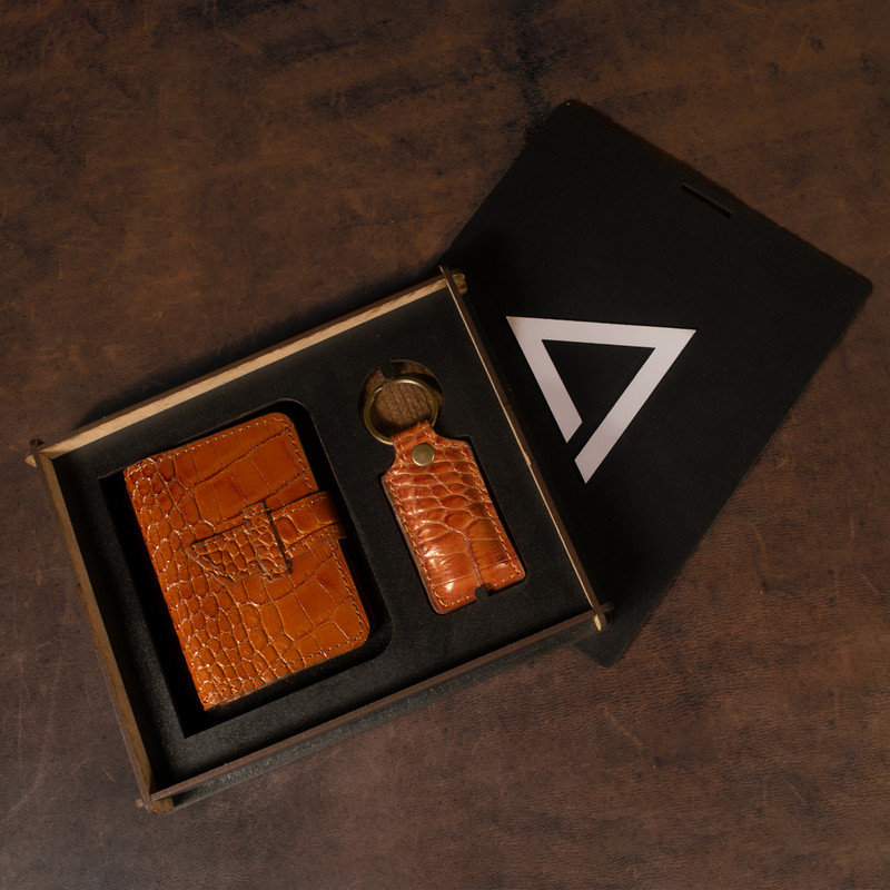 ست هدیه شامل بسته بندی هدیه، جاکارتی و جاکلیدی