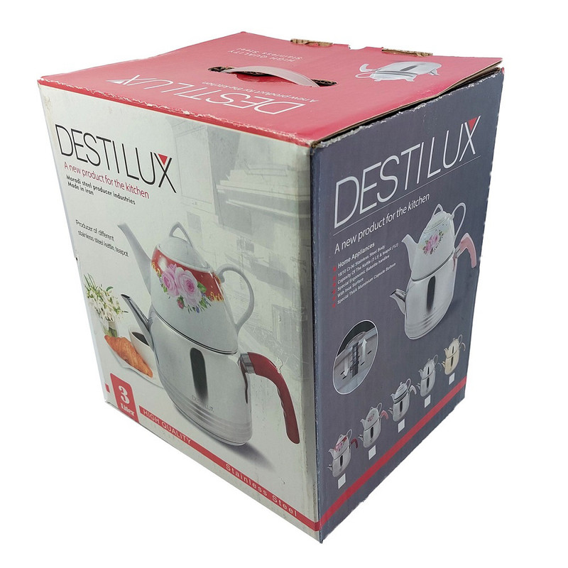 کتری دستیلوکس دارای کفه چدنی و از ورق استیل ضخیم و ضدزنگ تولید شده است. کتری این ست دارای دسته استیل بوده که با فاصله مناسبی از کتری طراحی شده تا هنگام استفاده دست شما را نسوزاند.