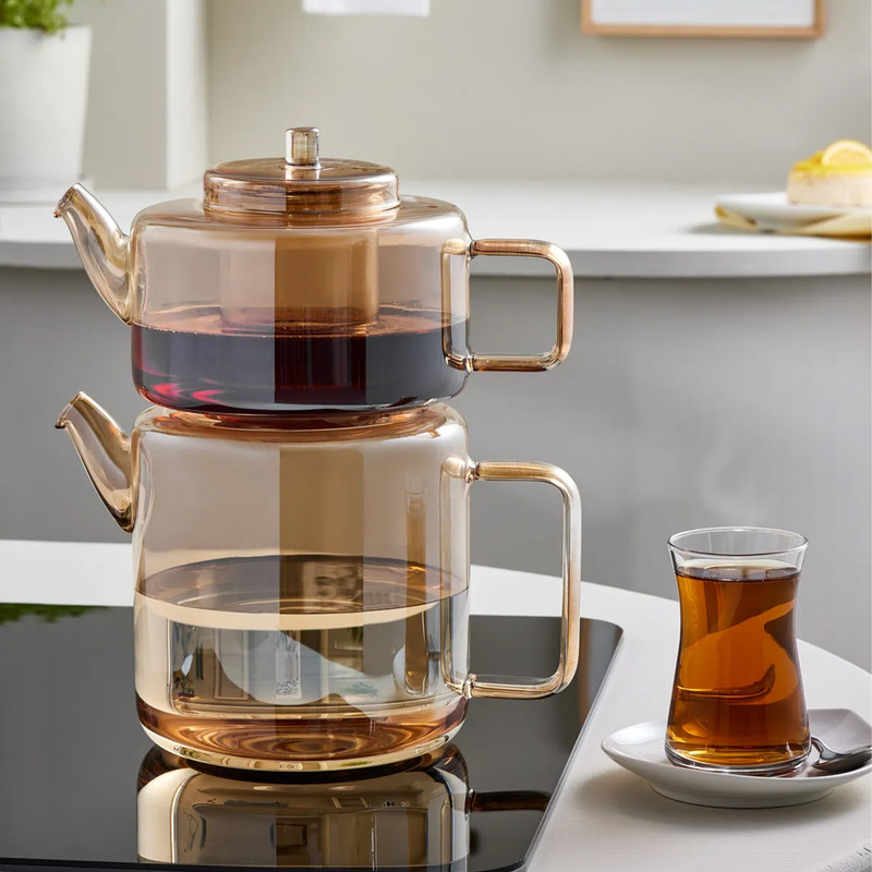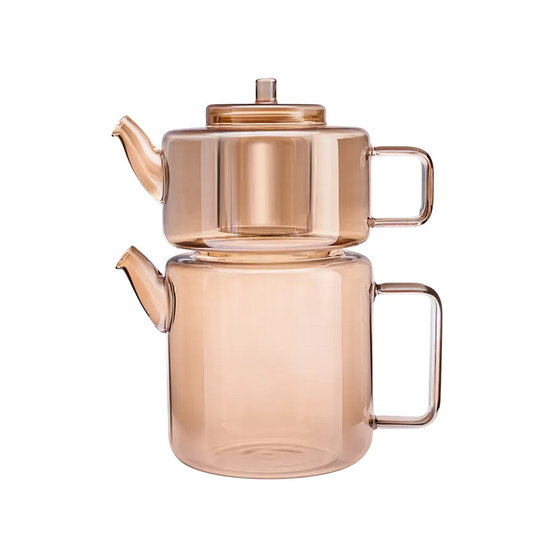ابعاد قوری : 13x13x9 - ظرفیت 1.1 لیتر - دارای درب و فیلتر - مقاومت بالا - جنس قوری از شیشه بوروسیلیکات