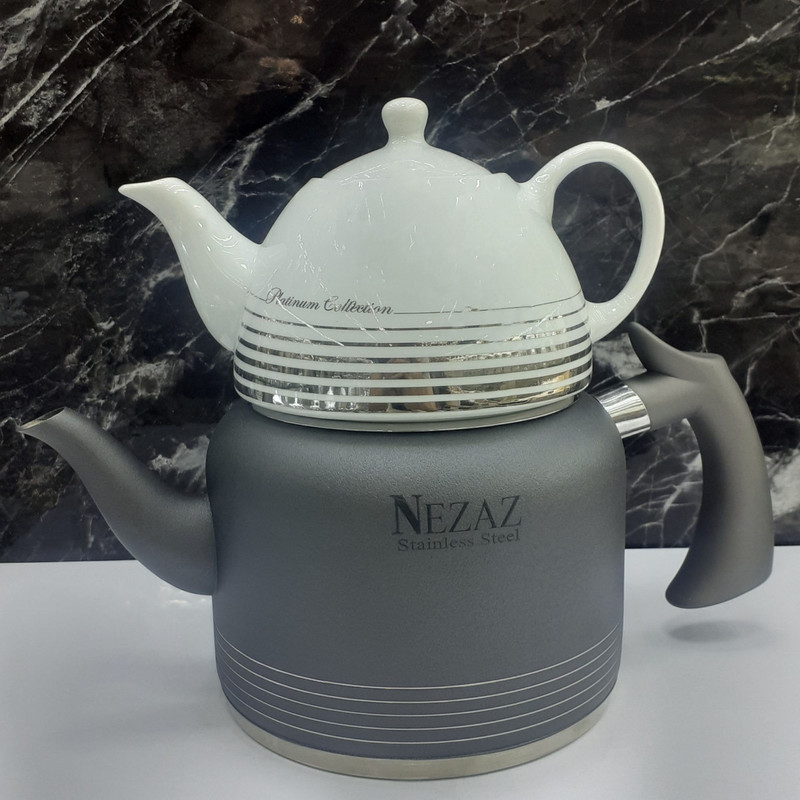 ست کتری و قوری نزاز مدل لوله دار طرح رنگی