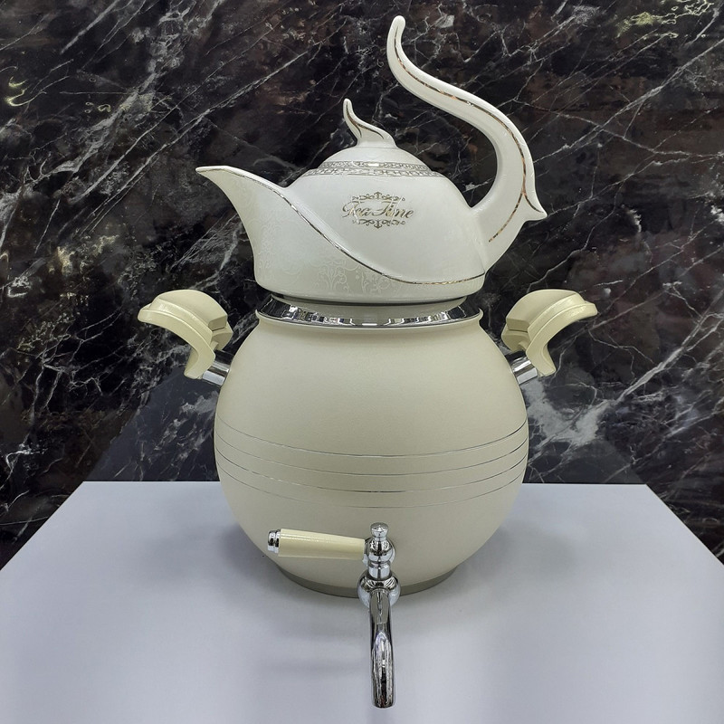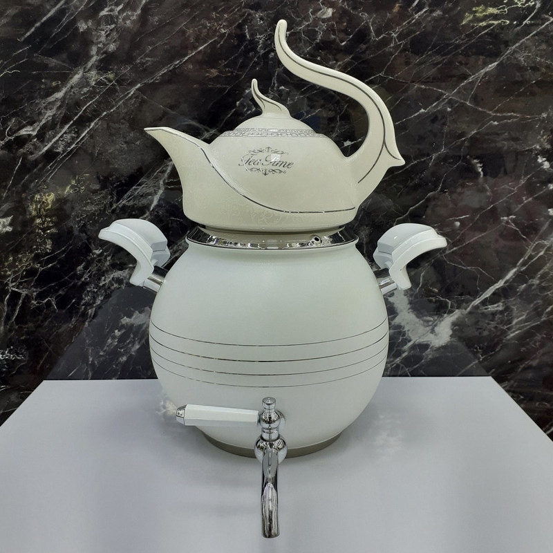 کتری ساختــهشده از استیــل ضد زنگ 304 و بدنهی یکپارچه با کفه ، کف کتری چدن با ضخامت تقریبی 8 میلی متر ، توصیه می شود کتری روی شعله بزرگتر از کفه قرار نگیرد تا پوشش رنگی کتری در اثر مجاورت با آتش آسیب نبیند و حتی الامکان تا محل اتصال دسته ها به کتری آب داشته باشد. شستشوی کتری و قوری به راحتی و با یک اسفنج نرم و مایع ظرفشویی امکان پذیر است بدون آنکه نگران خراشیدگی و لکه برداشتن آن باشید.