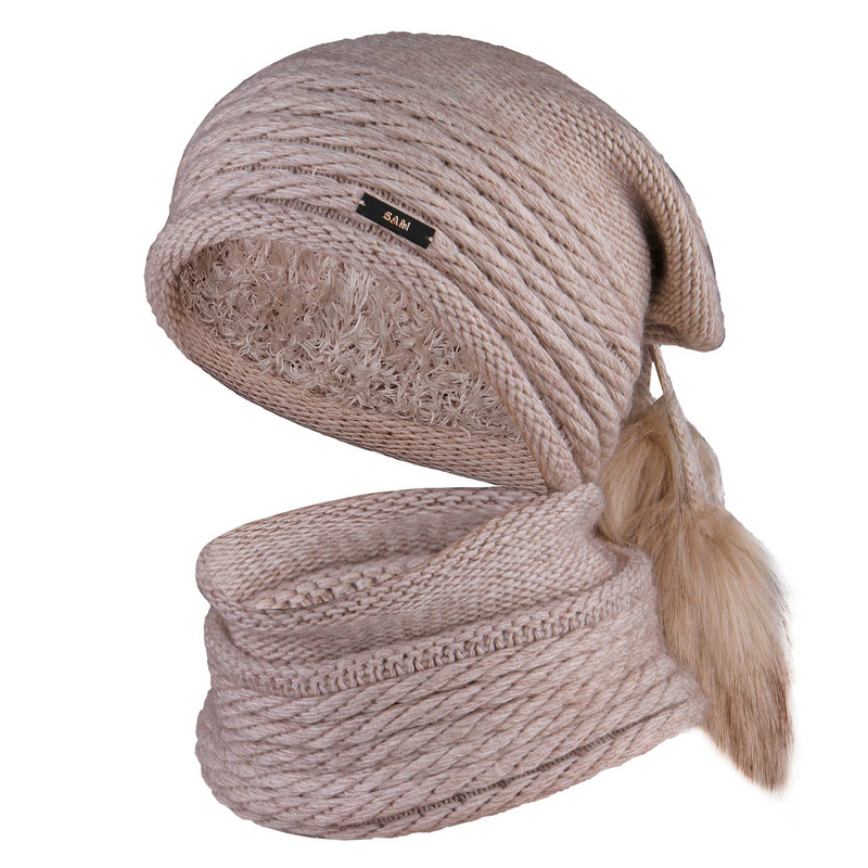 ست کلاه و شال گردن بافتنی مدل سام داخل خز 420