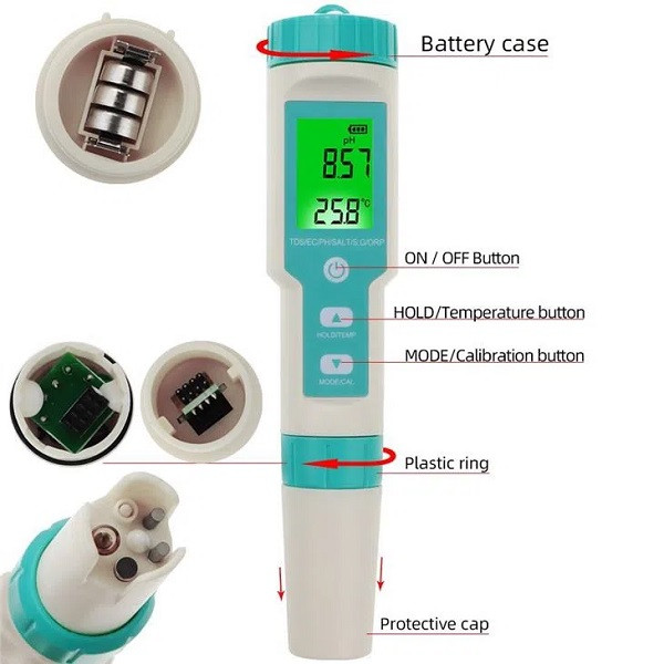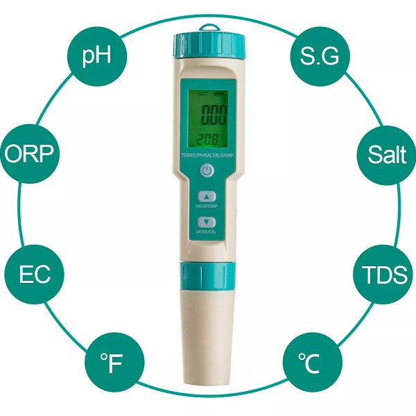 این دستگاه می تواند پارامترهای مهمی همچون TDS, EC, PH, SALT, S.G, ORP و دمای آب و کلیه مایعات را با دقت بسیار بالا اندازه گیری نماید