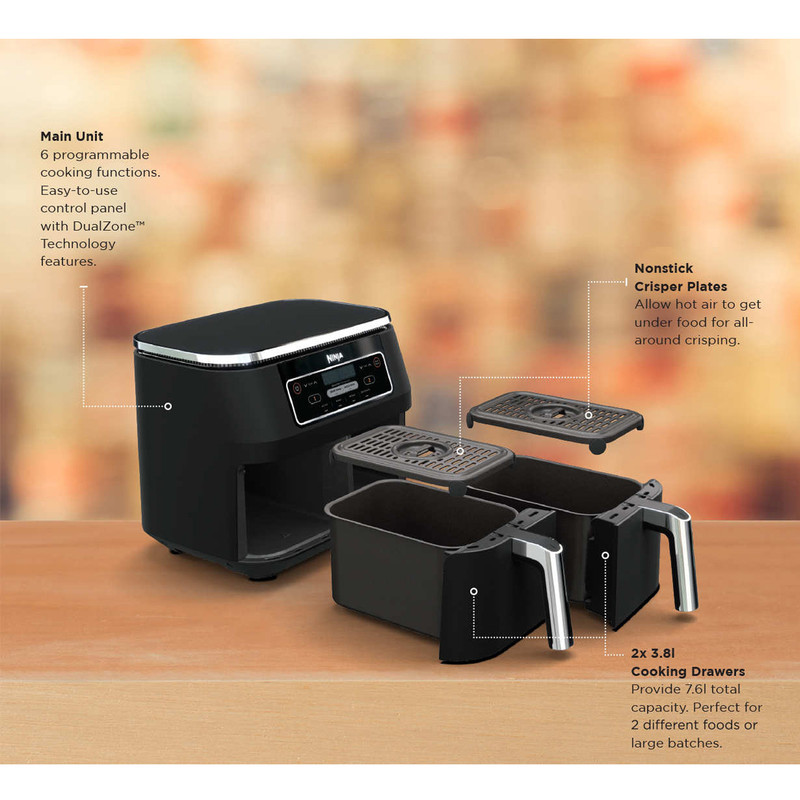 دارای 2 سبد پخت مستقل 3.8 لیتری ، تا 1.8 کیلوگرم سیب زمینی سرخ شده یا بال مرغ را همزمان بپزید