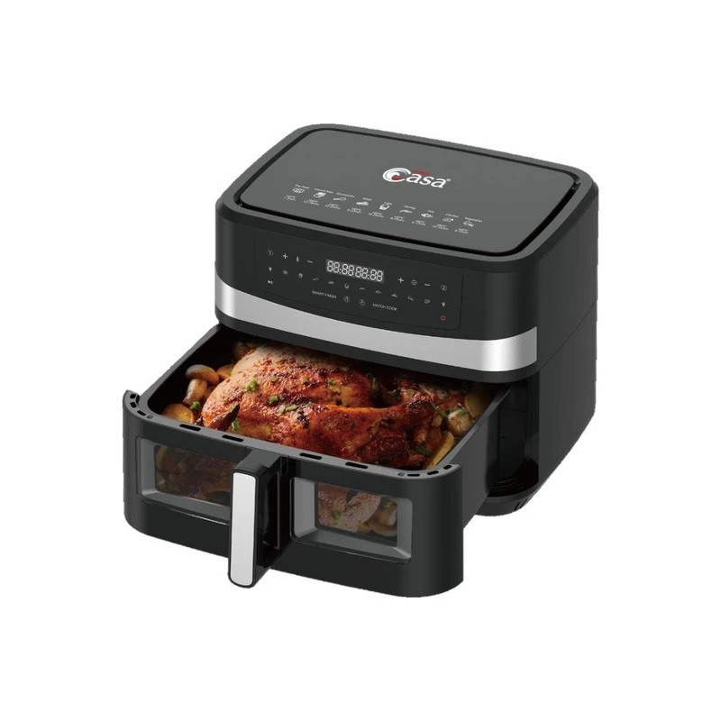سرخ کن دو قلو ۴ المنته از برند سوپر کاسا، دارای دو المنت در قسمت بالا و دو المنت در پایین سبد سرخ کن، ظرف داخلی از جنس گرانیت مقاوم در برابر حرارت و چسبندگی مواد غذایی، دارای ده برنامه پخت متنوع شامل: پیش گرم کردن، سیب زمینی سرخ کرده، مرغ، گوشت، کیک، میگو، ماهی، پیتزا، سبزیجات، بو دادن مغزیجات، قابیلت تنظیم دما و زمان هر سبد بصورت مجزا، قابلیت تنظیم یکدست دو سبد با هم، یکی از ویژگی های این محصول برنامه Smart Finish میباشد که به شما این امکان را میدهد دو برنامه پخت متنوع را انتخاب کنید اما با انتخاب این گزینه هر دو پخت را با هم تمام کند (یعنی اگر یک برنامه زمان پخت کمتری داشته باشد با برنامه دیگر که زمان پخت بیشتری دارد را همزمان تمام میکند)، در قسمت بالا محصول تصویر تمام مواد غذایی با زمان پخت و درجه پخت قرار گرفته است تا براحتی بتوانید زمان و حرارت دلخواه مواد مختلف را انتخاب کنید، تا ۸۰ درصد مصرف کمتر روغن نسبت به سرخ کن های دیگر و حفظ طعم و خواص مواد غذایی، قسمت فضای داخلی محل قرارگیری سبد سرخ کن از جنس گالوانیزه میباشد که در اکثر سرخ کن ها این قسمت پلاستیکی میباشد، طراحی جدید سبد سرخ کن که مراحل پخت قابل مشاهده بوده و دیگر برای مشاهده مراحل پخت نیاز نیست سبد سرخ کن را خارج کنید، دارای لامپ داخلی، طراحی و مهندسی محصول در کشور انگلستان مونتاژ نهایی در کشور چین