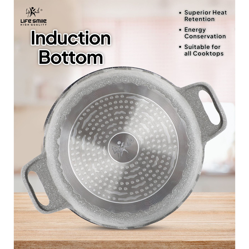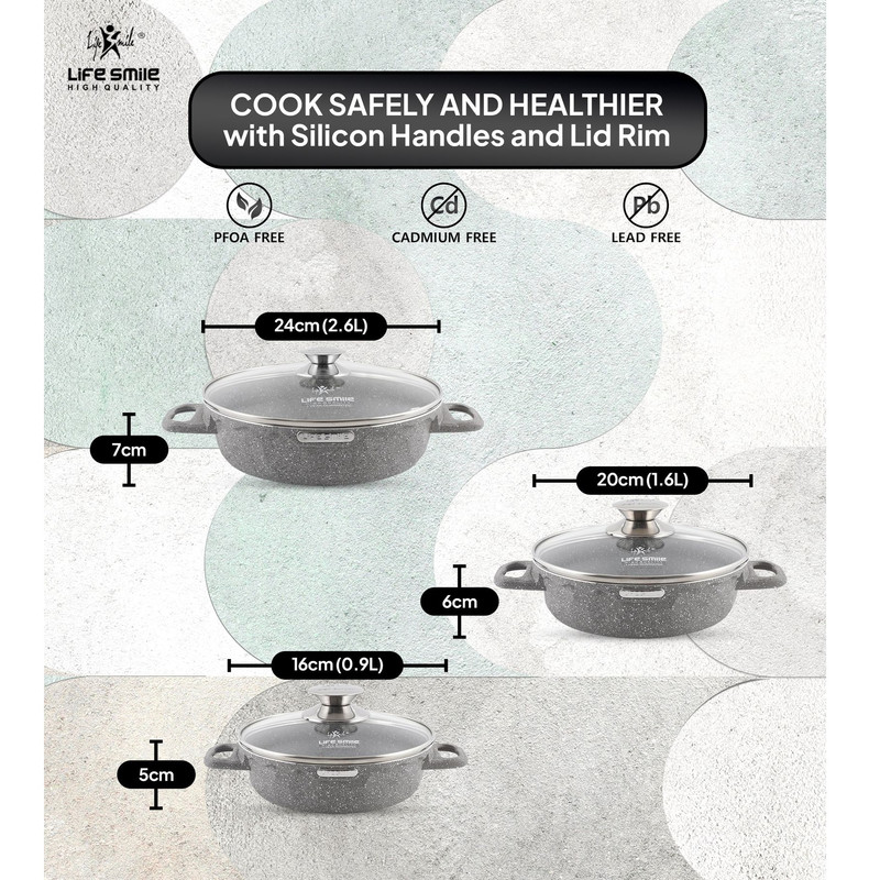 بدون PFOA و قابل استفاده در مایکروویو ، کف القایی برای حفظ حرارت برتر ،درب شیشه ای مقاوم 5 میلی متری با دریچه بخار و لبه استیل خالص 18/10 ، محصولات Life Smile راه حل مناسبی برای پخت غذاهای سالم و رژیمی بدون چربی هستند و تمیز کردن آنها بسیار آسان است. محصولات Life Smile از مواد اولیه مرغوب توسط تیم طراح متخصص در سبک های متنوع و دلپذیر ساخته شده است.