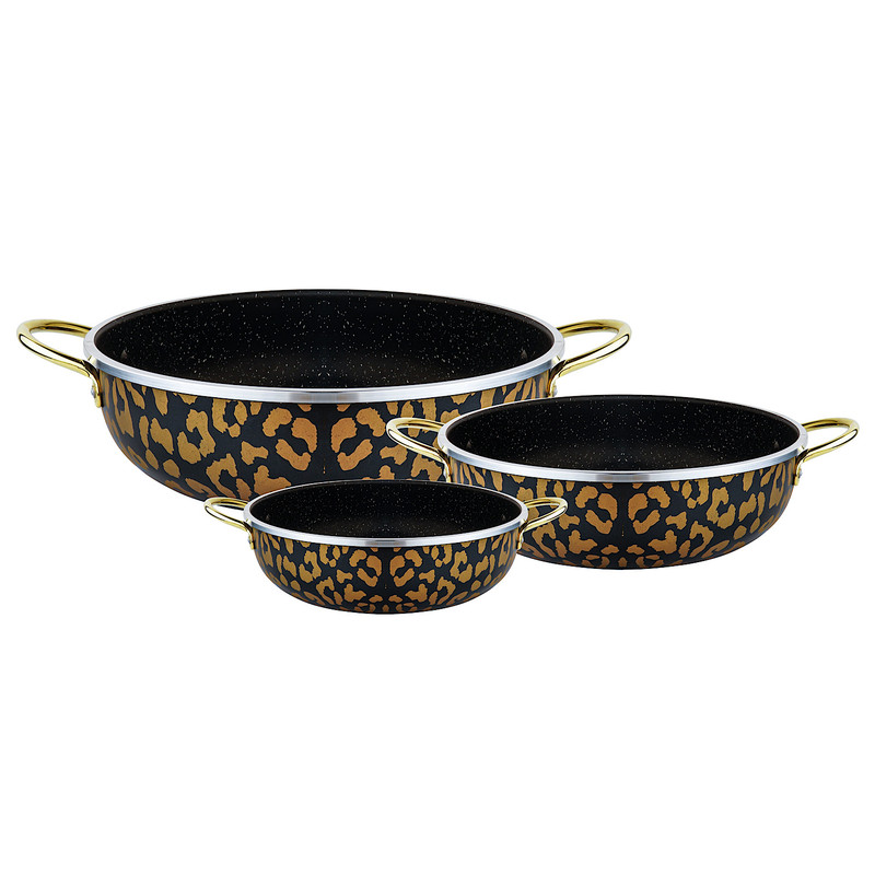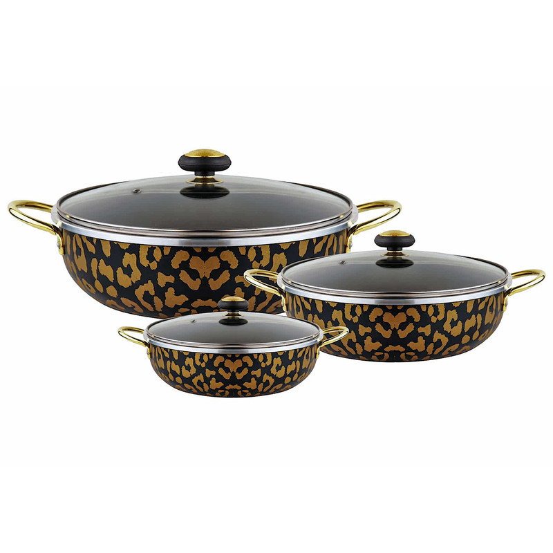 سرویس تابه پلنگی 6 پارچه در ابعاد 18 و 22 و 28 می باشد