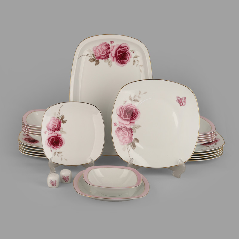 سرویس غذاخوری 27 پارچه 6 نفر چینی زرین ایران مدل رزفلاور سری کواترو درجه عالی