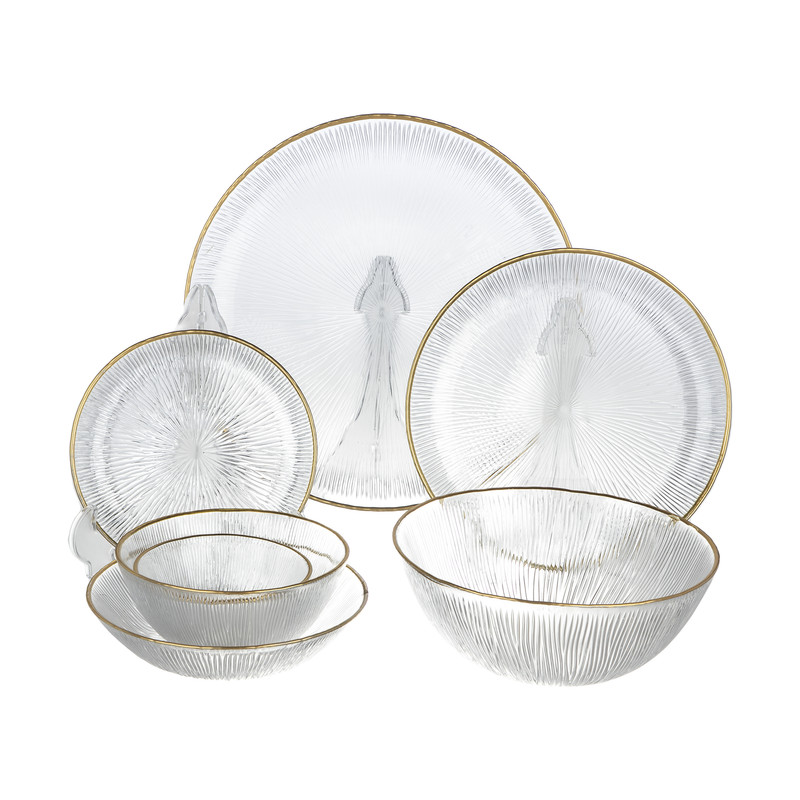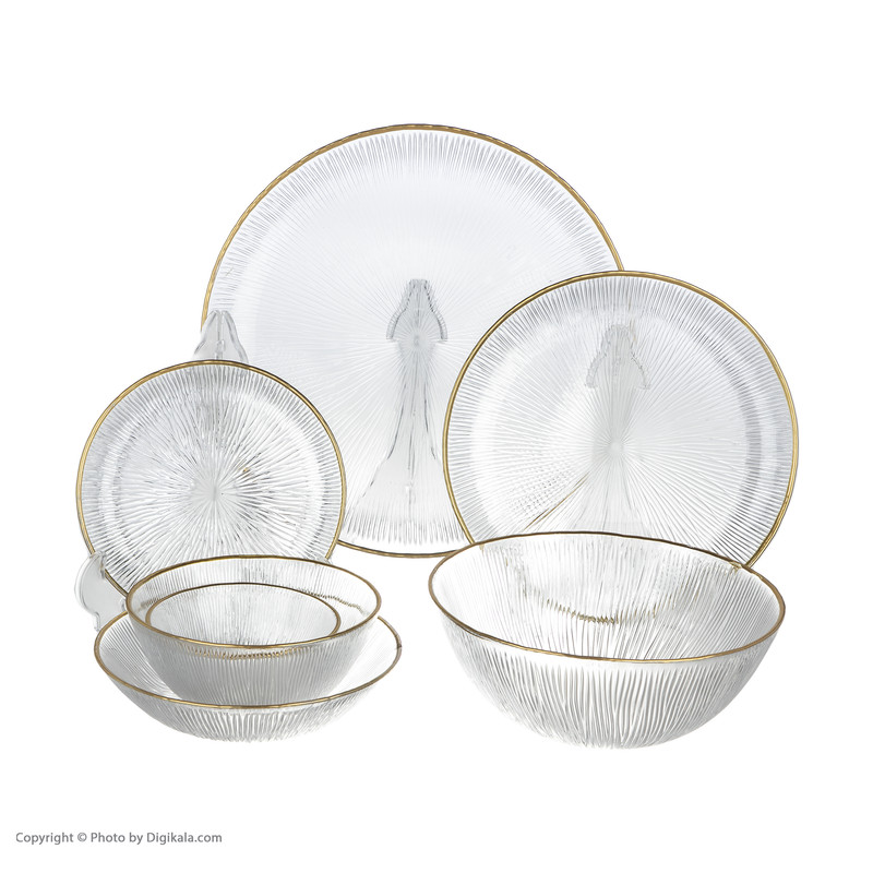 - دارای 6 عدد بشقاب غذا خوری به ابعاد 2×25×25 سانتی متر و وزن 480 گرم