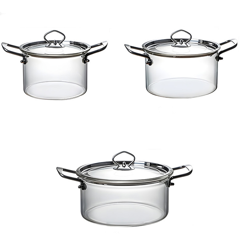 سرویس قابلمه شیشه ای 3 پارچه مدل دسته استیل N33،N34،N35