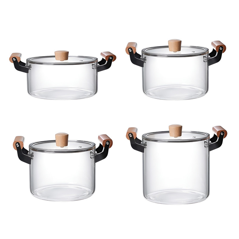 سرویس قابلمه شیشه ای 4 پارچه مدل دسته چوبی N23،N24،N25