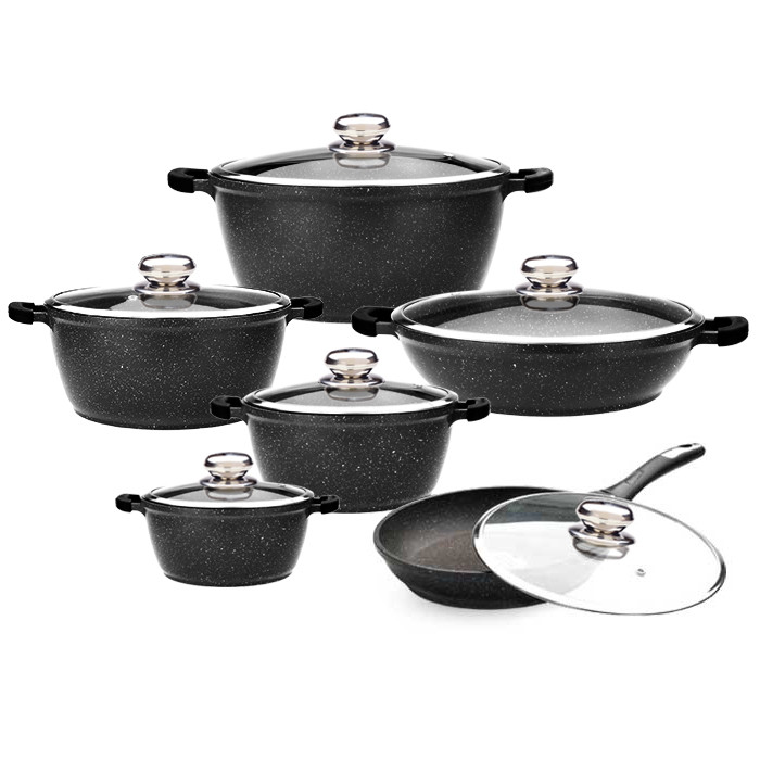 سرویس قابلمه و تابه گرانیت 12 پارچه زرساب مدل گریپ
