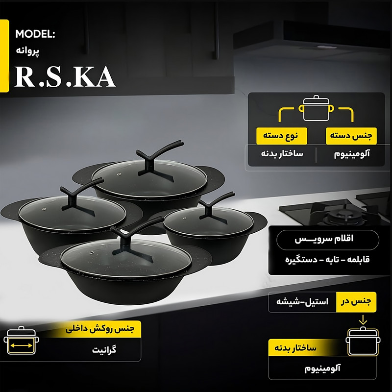 سرویس قابلمه و تابه گرانیت 8 پارچه آرسکا مدل پروانه