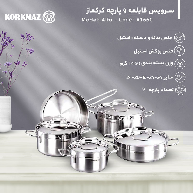 سرویس قابلمه 9 پارچه کرکماز مدل Alfa کد A1660