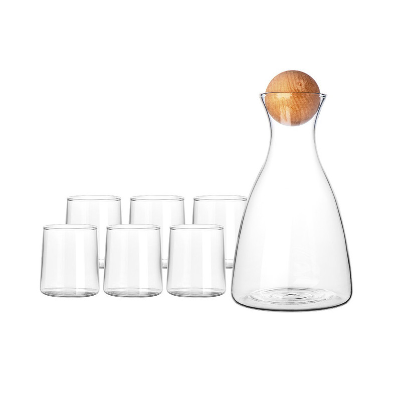 شفاف و با کیفیت-گنجایش پارچ 1/7 لیتر- گنجایش هر لیوان 320 میلی لیتر - جنس درب پارچ گوی چوبی