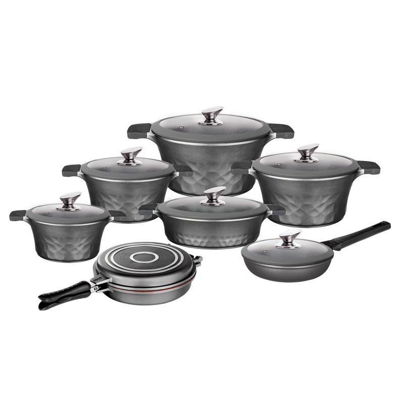 - سرویس پخت 14 پارچه شامل: - 4 عدد قابلمه، 2 عدد تابه و یک تابه رژیمی در سایزهای ذیل: - قابلمه سایز :20 سانتیمتر با درب - قابلمه سایز :24 سانتیمتر با درب - قابلمه سایز :28 سانتیمتر درب - قابلمه سایز : 32 سانتیمتر با درب- تابه سایز: 24 سانتیمتر با درب- تابه سایز :28 سانتیمتر با درب -تابه دوطرفه رژیمی سایز 28 سانتیمتر -تحت لیسانس GIFFINI - دارای نوار سیلیکونی برای درپوش و دارای سوپاپ -ساختار بدنه: آلومینیوم dicast-قپک استیل -رنگ بژ با درب شکلاتی -رنگ تیتانیوم با درب سیلور میباشد-رنگ کورهای بسیار مقاوم در برابر حرارت -پوشش داخلی با گرانیت طبیعی