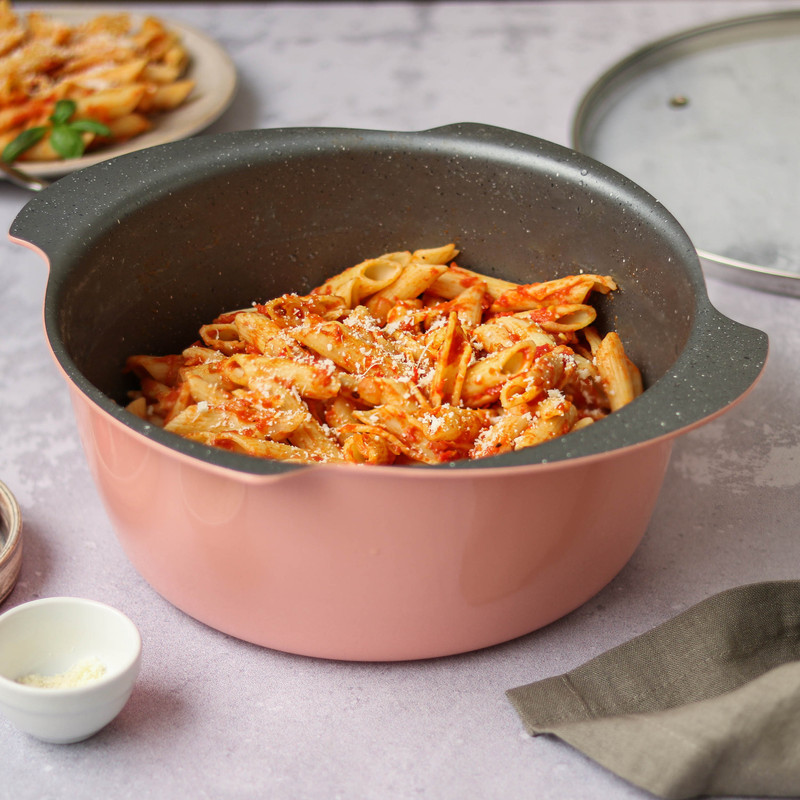 قابلمه سایز ۲۰: 960 گرم، قابلمه سایز ۲۴: 1445 گرم، تابه سایز ۲۴: 980 گرم