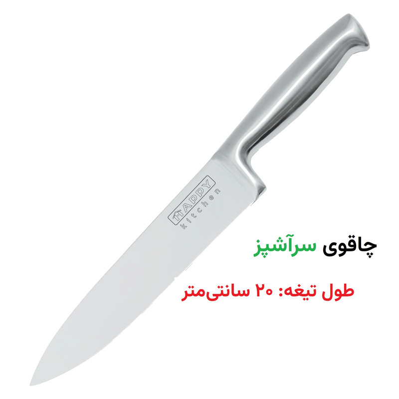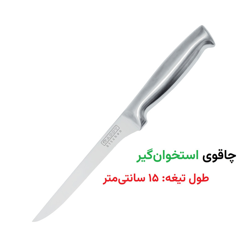 محصولاتِ موجود در این سرویسِ چاقویِ ۵ پارچه براساس عکسهای موجود در گالری تصاویر شاملِ: یک عدد «چاقوی سَرآشپز» (با تیغه به طولِ ۲۰ سانتیمتر)؛ یک عدد «چاقوی بُرش» (با تیغه به طولِ ۲۰ سانتیمتر)؛ یک عدد «چاقوی استخوانگیر» (با تیغه به طولِ ۱۵ سانتیمتر)؛ یک عدد «چاقوی چندمنظوره» (با تیغه به طولِ ۱۲ سانتیمتر)؛ یک عدد «چاقوی میوهخوری [پوستکَن]» (با تیغه به طولِ ۸ سانتیمتر) و یک عدد جایگاه (اِستَند) از جنسِ «پلاستیکِ آکریلیک» جهت قراردادن چاقوها در داخلِ آن، میباشد.