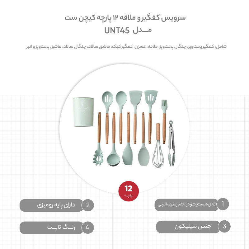 سرویس کفگیر و ملاقه 12 پارچه مدل کیچن ست کد UNT45