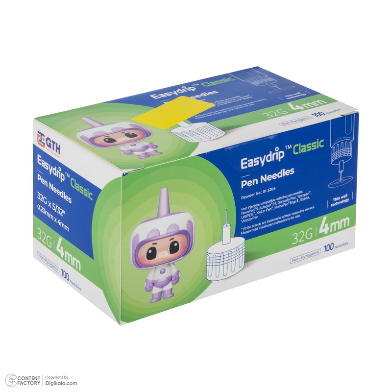 سر سوزن قلم انسولین ایزی دریپ مدل 01-3204 سایز 4 میلیمتر بسته 100 عددی