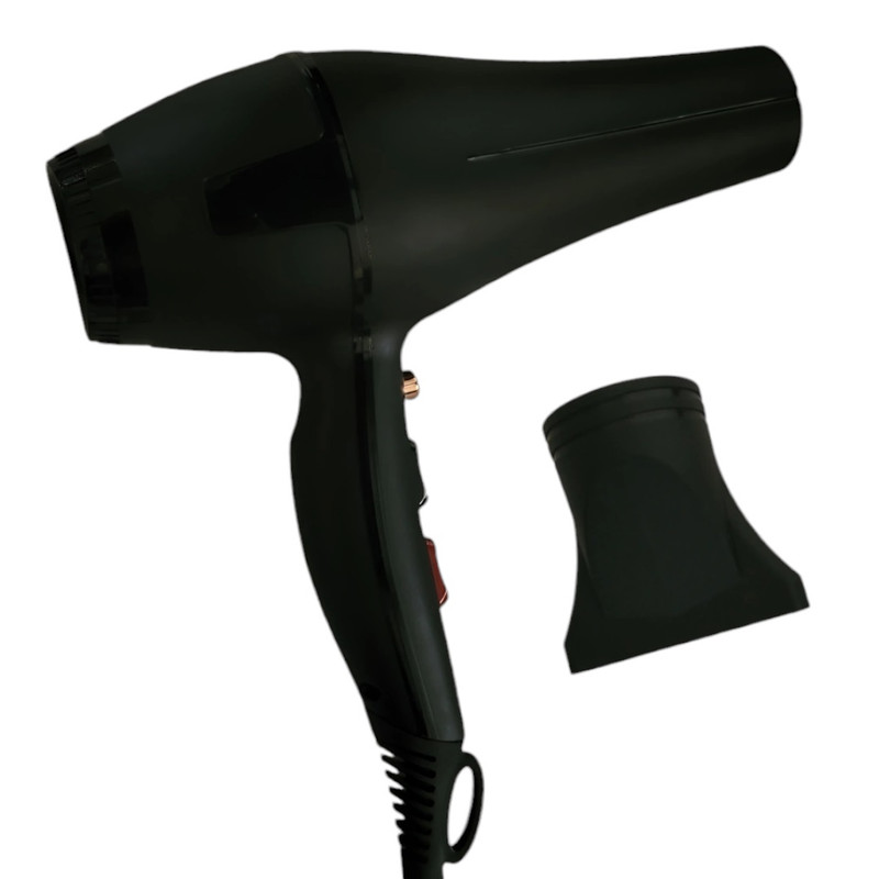 سشوار حرفهای مدل professional، موتور AC، توان مصرفی 9000 وات، دارای قابلیت باد سرد، فناوری تولید یون، تعویض سری، طراحی ارگونومیک، با حالت حجمدهنده، وزن 539 گرم، تنظیم حرارت 3 حالته و کنترل سرعت 2 حالته، به همراه سری متمرکزکننده پهن