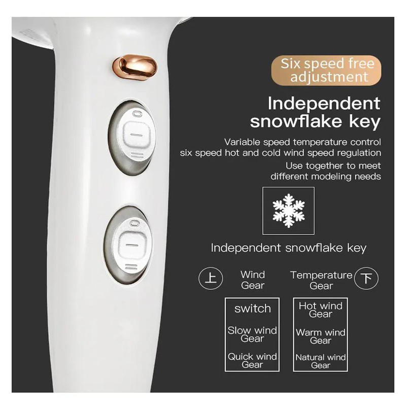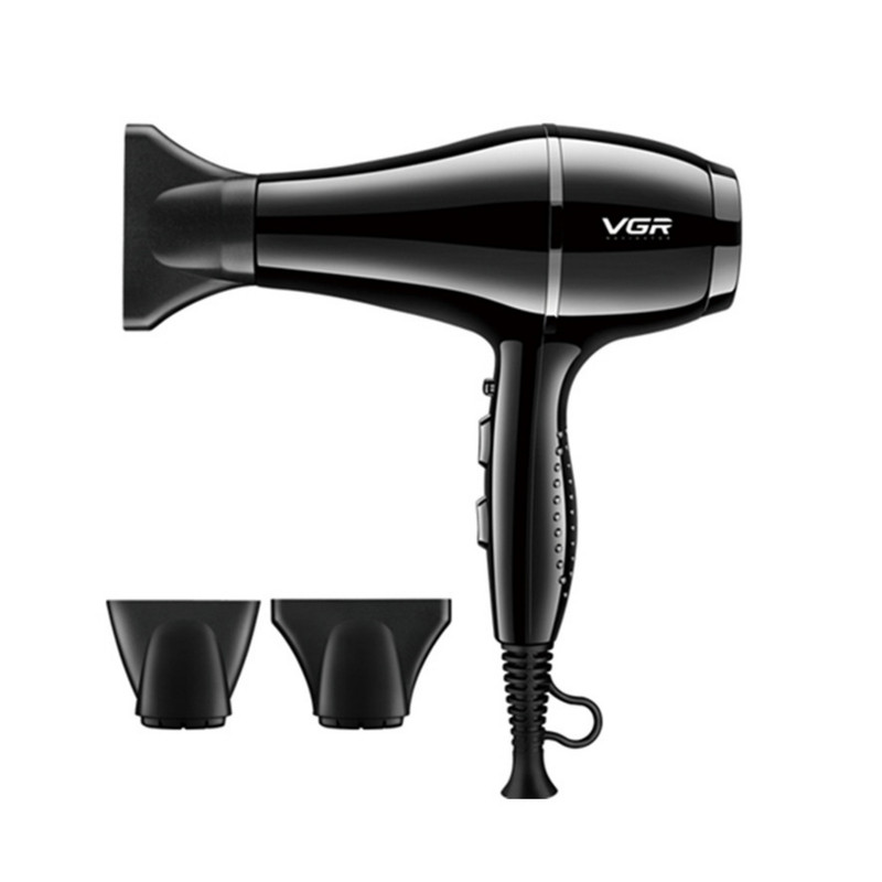 سشوار حرفهای وی جی ار مدل V-414، موتور AC با توان مصرفی 2200 وات، دارای فناوری تولید یون، دارای حلقه آویختن، با حالت صافکننده و حجمدهنده، وزن 802 گرم، تنظیم حرارت 3 حالته و کنترل سرعت 2 حالته، به همراه 3 عدد سری متمرکزکننده