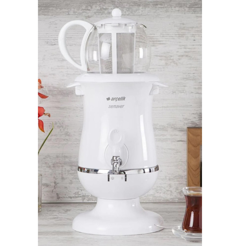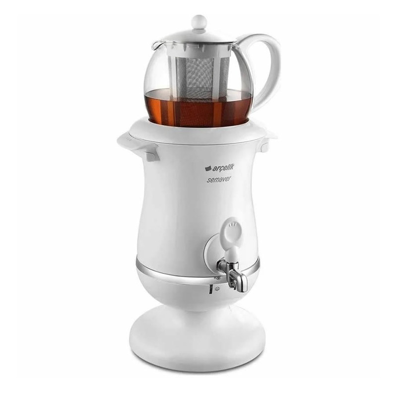 سماور برقی از برند آرچلیک، ساخت کشور ترکیه، گنجایش سماور ۲.۵ لیتر، توان مصرفی ۱۸۰۰ وات، سیستم گرم نگه دارنده اتومات که بعد از جوش آمدن آب بصورت خودکار روی سیستم گرم نکه دارنده قرار میگیرد، یکی از مهم ترین ویژگی های این محصول شیر تمام استیل و بدون مهره میباشد که در دراز مدت مشکل چکه کردن آب را نخواهید داشت، قوری شیشه ای ساخت شرکت شات آلمان با گنجایش ۱.۲ لیتر، دارای درب مجزا جهت استفاده از سماور بصورت تکی، درب سماور جدا شو که براحتی میتوانید داخل سماور را شستشو دهید،