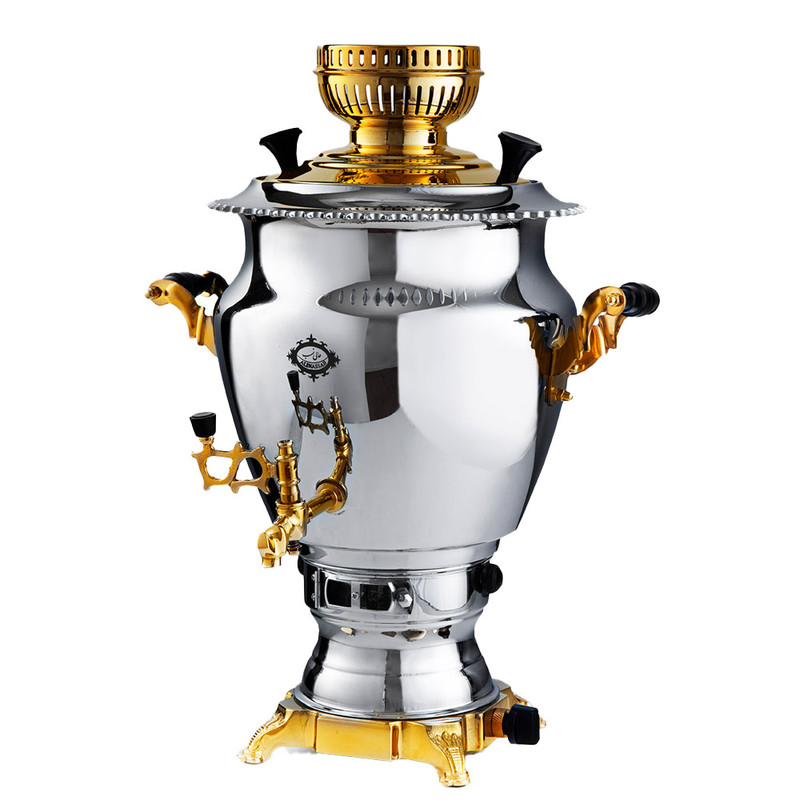 سماور گازی عالی نسب مدل گنجینه نفیس طلائی گنجایش 6 لیتر
