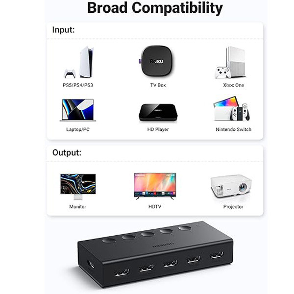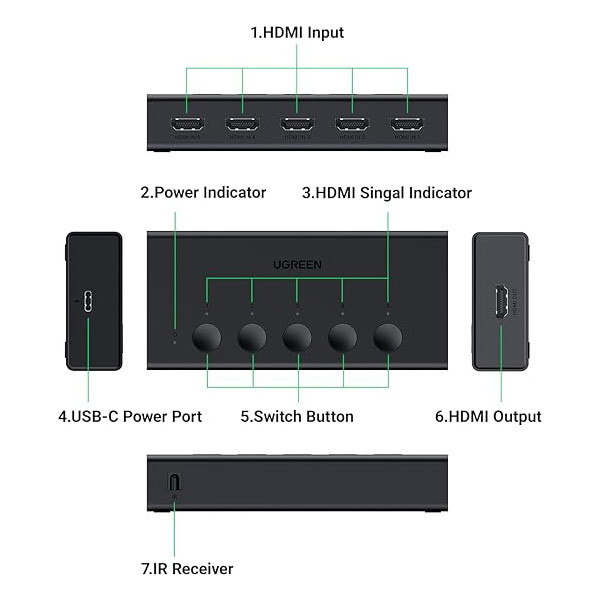 سوئیچ 1 به 5 HDMI یوگرین مدل CM568-90512 4K