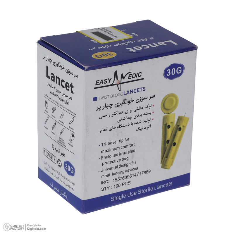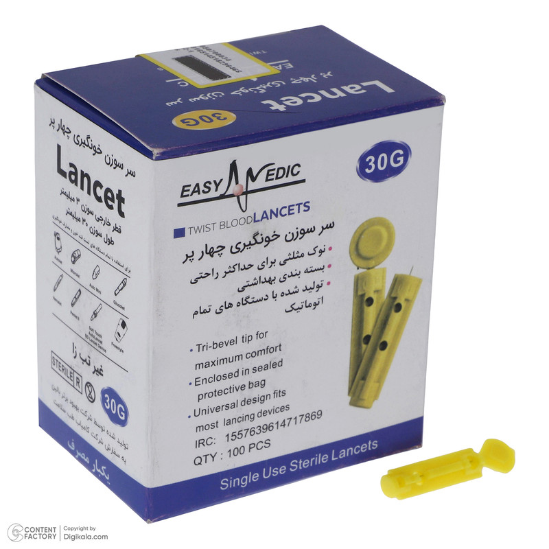 سوزن تست قند خون ایزی مدیک مدل 30G بسته 100 عددی