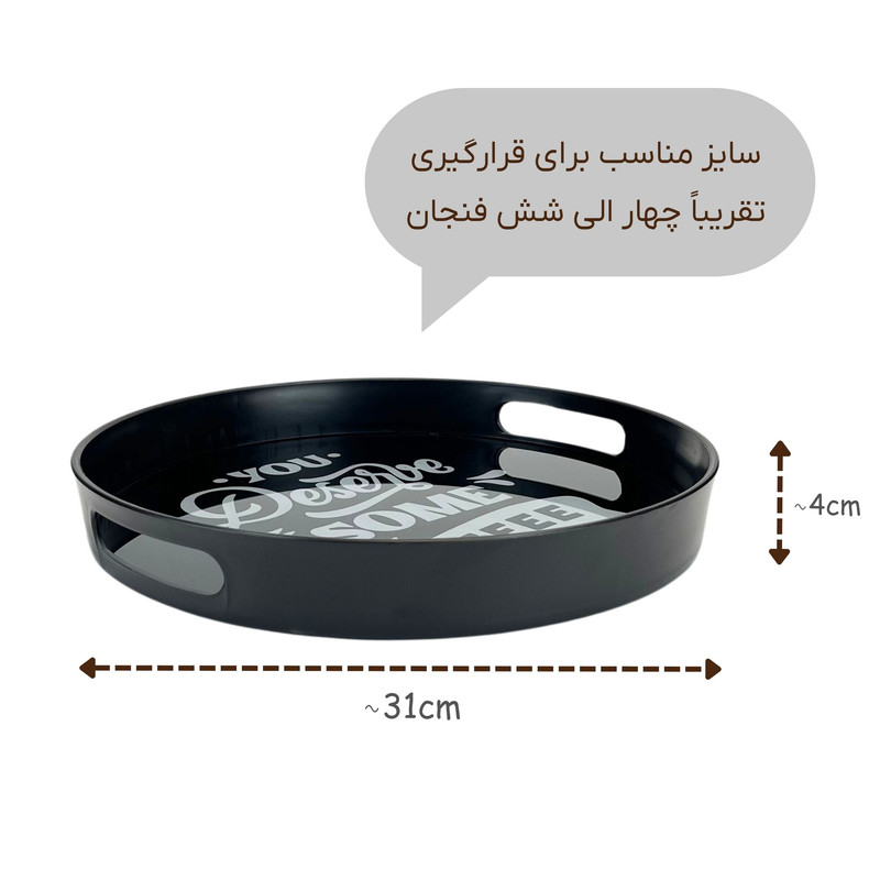 مناسب برای هدیه و جهیزیه | مناسب برای سرو انواع نوشیدنی ها | مناسب برای سرو چای و قهوه | ساخته شده از شیشه و پلاستیک با کیفیت | کاملا بهداشتی، قابل شستشو و آبگریز | ابعاد به ترتیبِ طول، عرض و ضخامت معادل 31، 31 و 4 سانتیمتر | قابل استفاده جهت مصارف خانگی، رستورانها، کافی شاپ ها و هتل ها