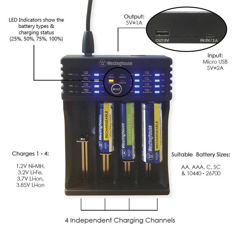 شارژر باتری وستینگهاوس مدل WBC-011-CB