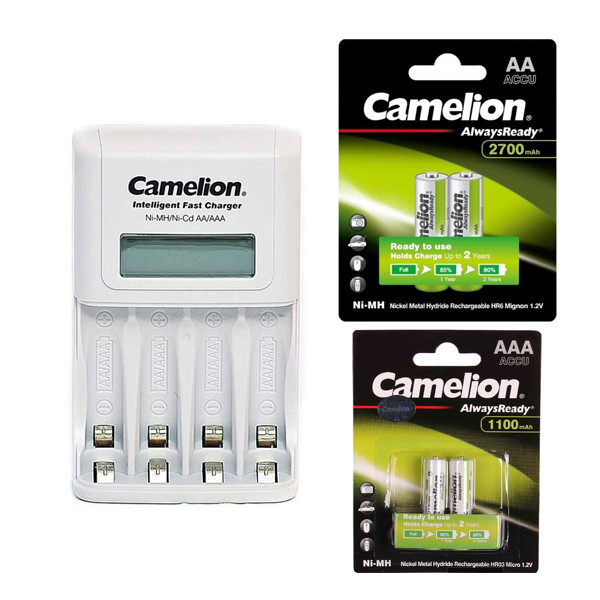 شارژر باتری کملیون مدل BC-1012 به همراه 4 عدد باتری قلمی و نیم قلمی شارژی